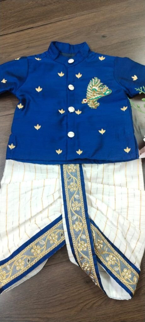 -38%Raw Silk Kurta Set – Vel Model Design Step into elegance with this stunning Raw Silk Kurta Set, crafted with rich detail and comfort in mind . Kurta: Premium raw silk fabric with full aari work, designed in a traditional Vel model Collar: Highlighted with intricate full collar aari work and fine hand embroidery for a regal finish Pant: Coordinated pant with elegant full lace work attached Lining: Full cotton lining ensures comfort and breathability throughout the day A perfect outfit for festive occasions, temple visits, or traditional functions.in Boys KurtasSku: PRB275