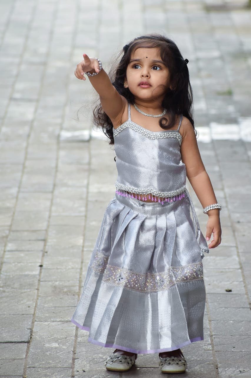 Crafted from luxurious pattu silk, our clothing offers the richness of traditional textiles with the comfort your little one deserves. The fabric is chosen for its soft feel, lustrous sheen, and long-lasting wear, making it perfect for both grand celebrations and casual gatherings.