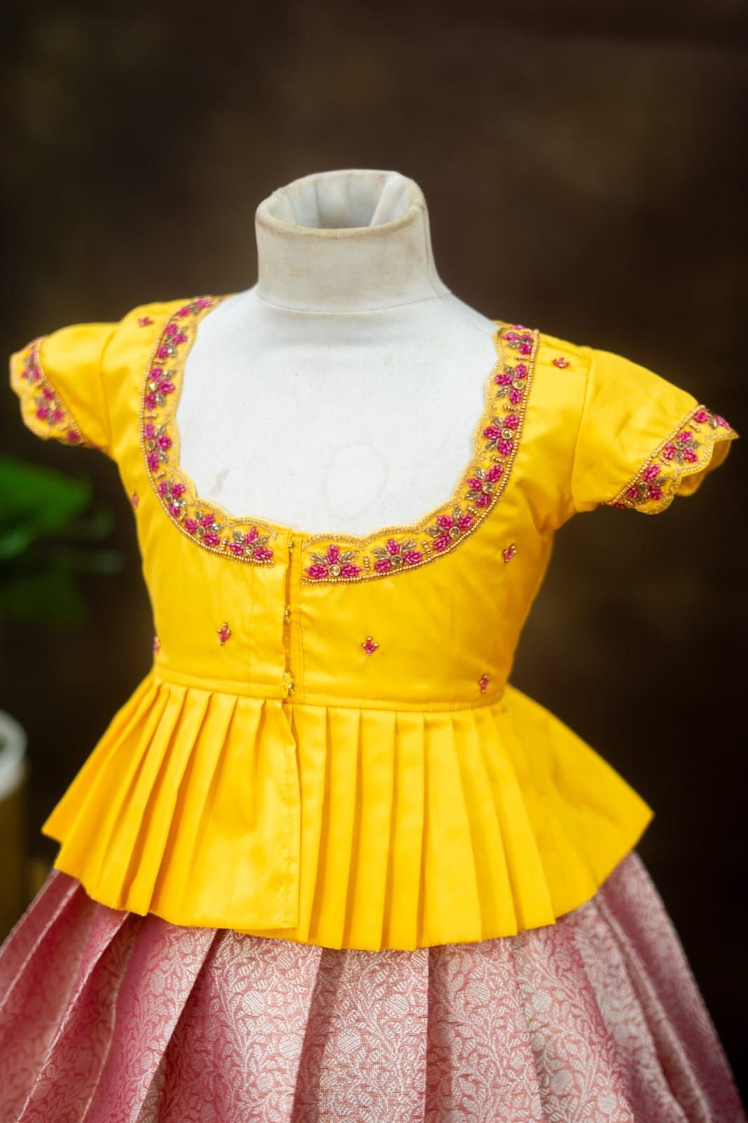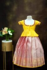 Crafted from luxurious pattu silk, our clothing offers the richness of traditional textiles with the comfort your little one deserves. The fabric is chosen for its soft feel, lustrous sheen, and long-lasting wear, making it perfect for both grand celebrations and casual gatherings.
