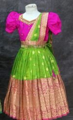 Crafted from luxurious pattu silk, our clothing offers the richness of traditional textiles with the comfort your little one deserves. The fabric is chosen for its soft feel, lustrous sheen, and long-lasting wear, making it perfect for both grand celebrations and casual gatherings.