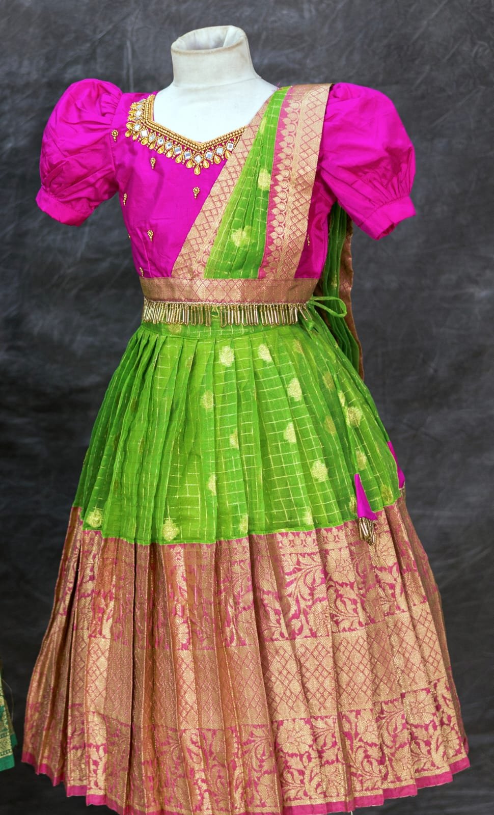 Elevate your little one’s wardrobe with Prettypattu's exquisite collection of Pattu Pavadai, Frocks, and Half Sarees – a perfect blend of tradition, comfort, and elegance. Designed to celebrate the rich cultural heritage of South India, these timeless pieces bring grace and charm to any occasion, whether it's a festival, family gathering, or a special event.