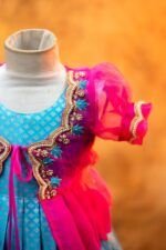 Tailored with a focus on comfort and movement, our garments are designed to ensure ease of wear for girls of all ages. Whether it’s a playful frock for a casual day, a Pattu Pavadai for festive occasions, or a Half Saree for a cultural event, our collection ensures that your little one looks graceful while feeling comfortable throughout the day.
