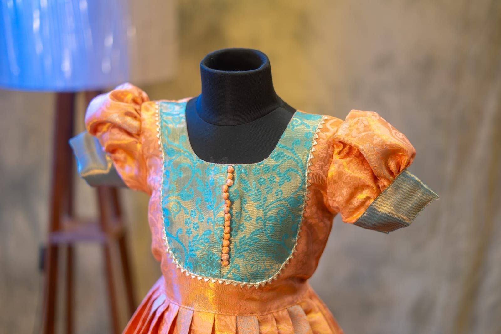 Crafted from luxurious pattu silk, our clothing offers the richness of traditional textiles with the comfort your little one deserves. The fabric is chosen for its soft feel, lustrous sheen, and long-lasting wear, making it perfect for both grand celebrations and casual gatherings.