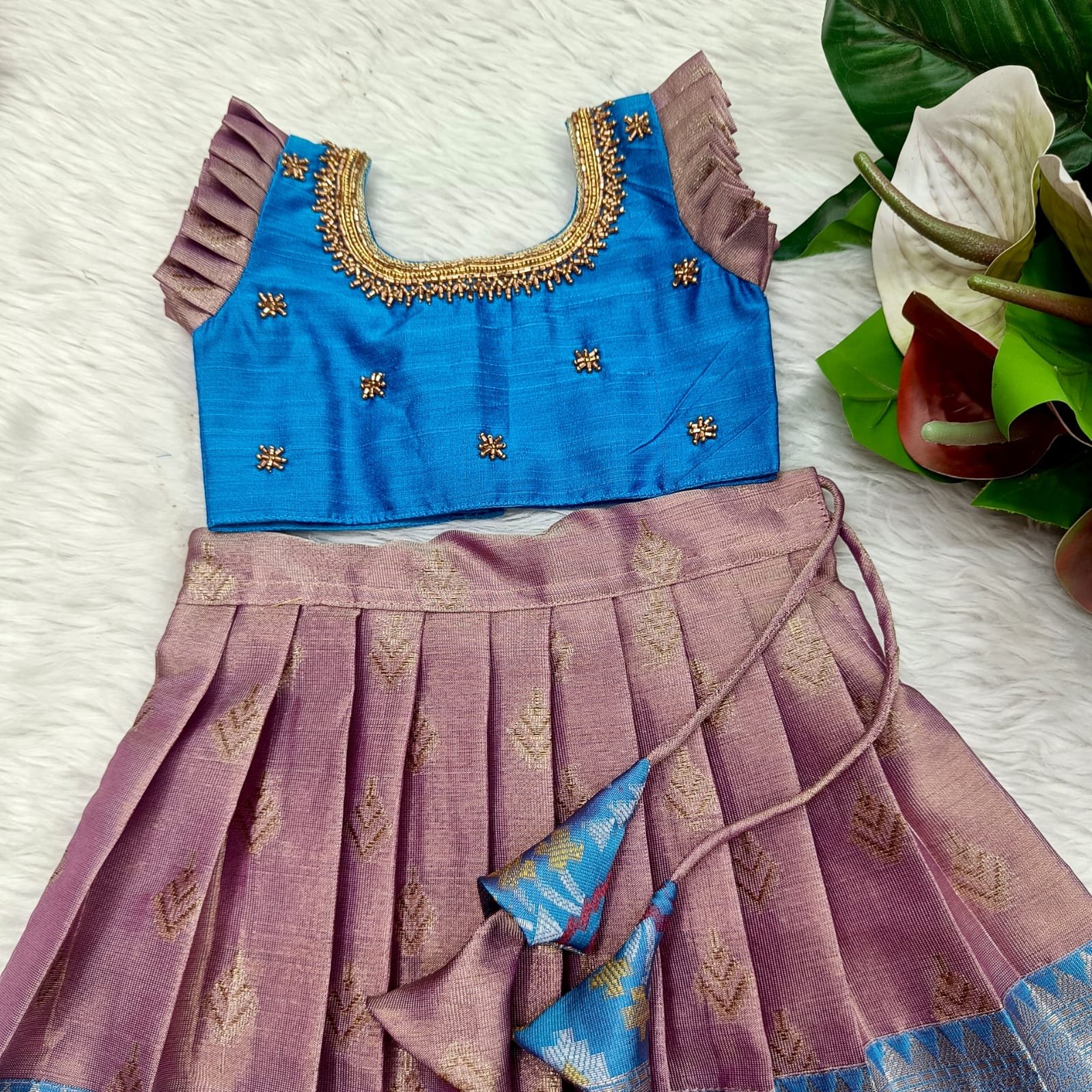 Crafted from luxurious pattu silk, our clothing offers the richness of traditional textiles with the comfort your little one deserves. The fabric is chosen for its soft feel, lustrous sheen, and long-lasting wear, making it perfect for both grand celebrations and casual gatherings.