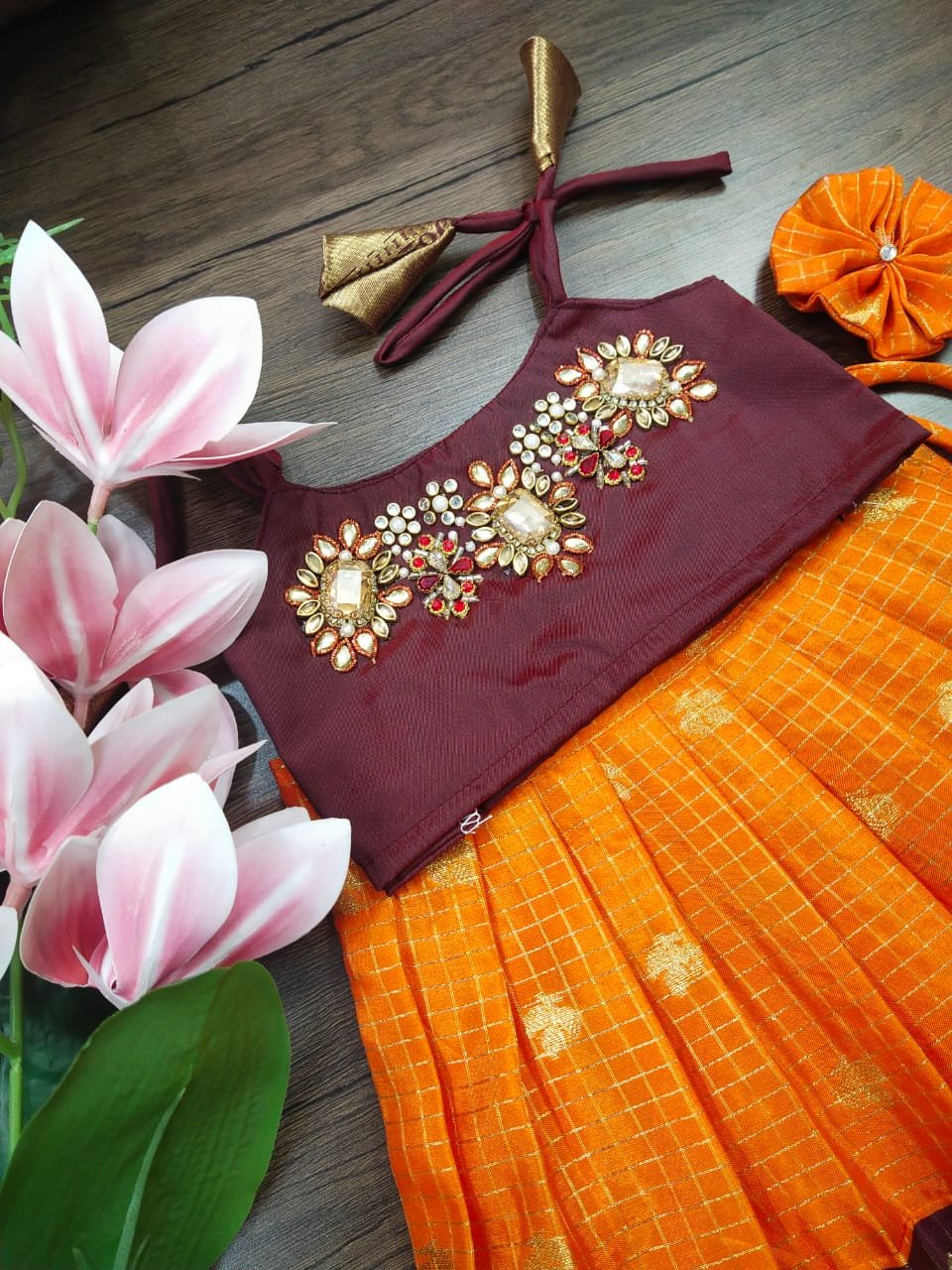 Crafted from luxurious pattu silk, our clothing offers the richness of traditional textiles with the comfort your little one deserves. The fabric is chosen for its soft feel, lustrous sheen, and long-lasting wear, making it perfect for both grand celebrations and casual gatherings.