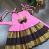 Crafted from luxurious pattu silk, our clothing offers the richness of traditional textiles with the comfort your little one deserves. The fabric is chosen for its soft feel, lustrous sheen, and long-lasting wear, making it perfect for both grand celebrations and casual gatherings.