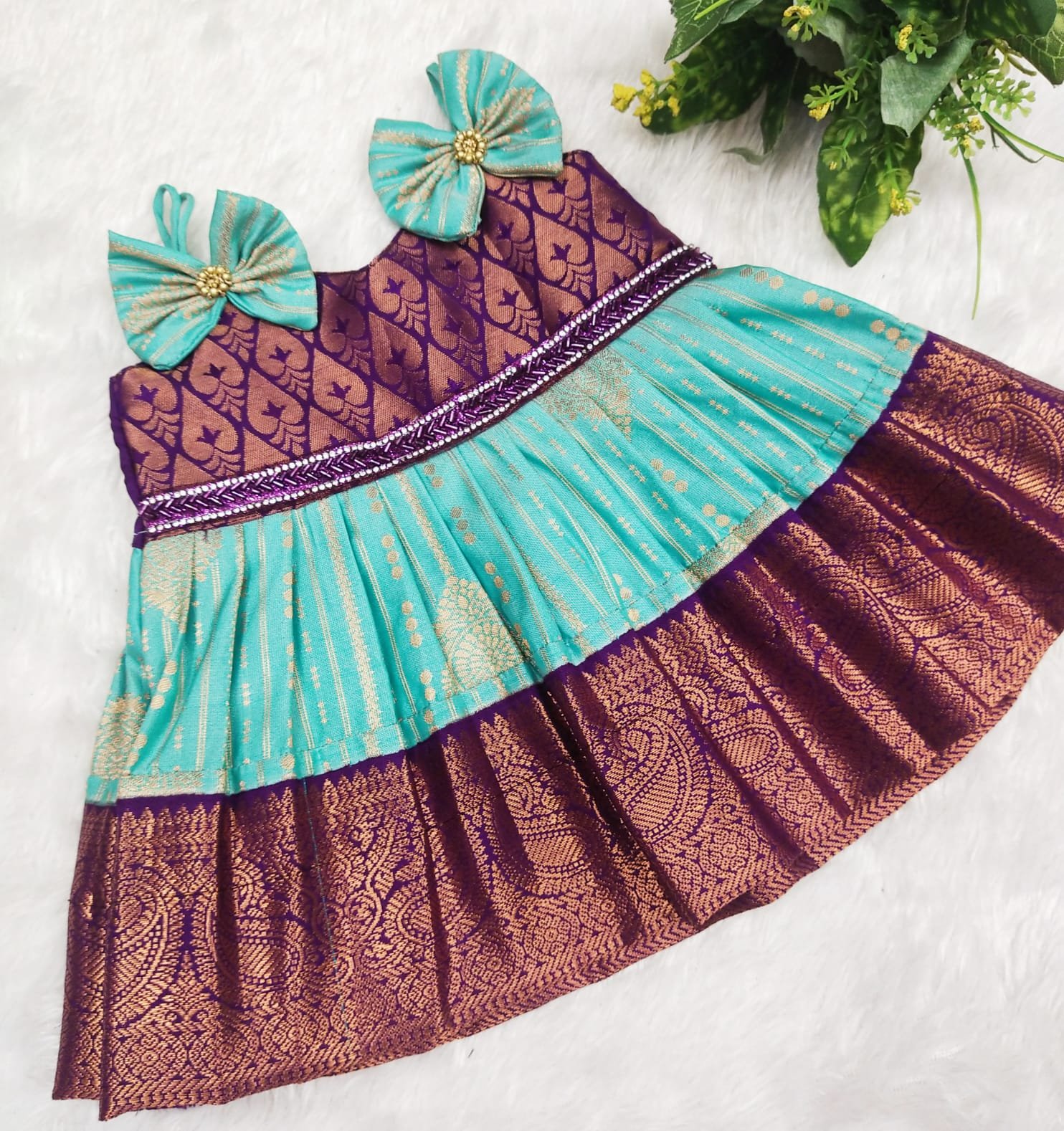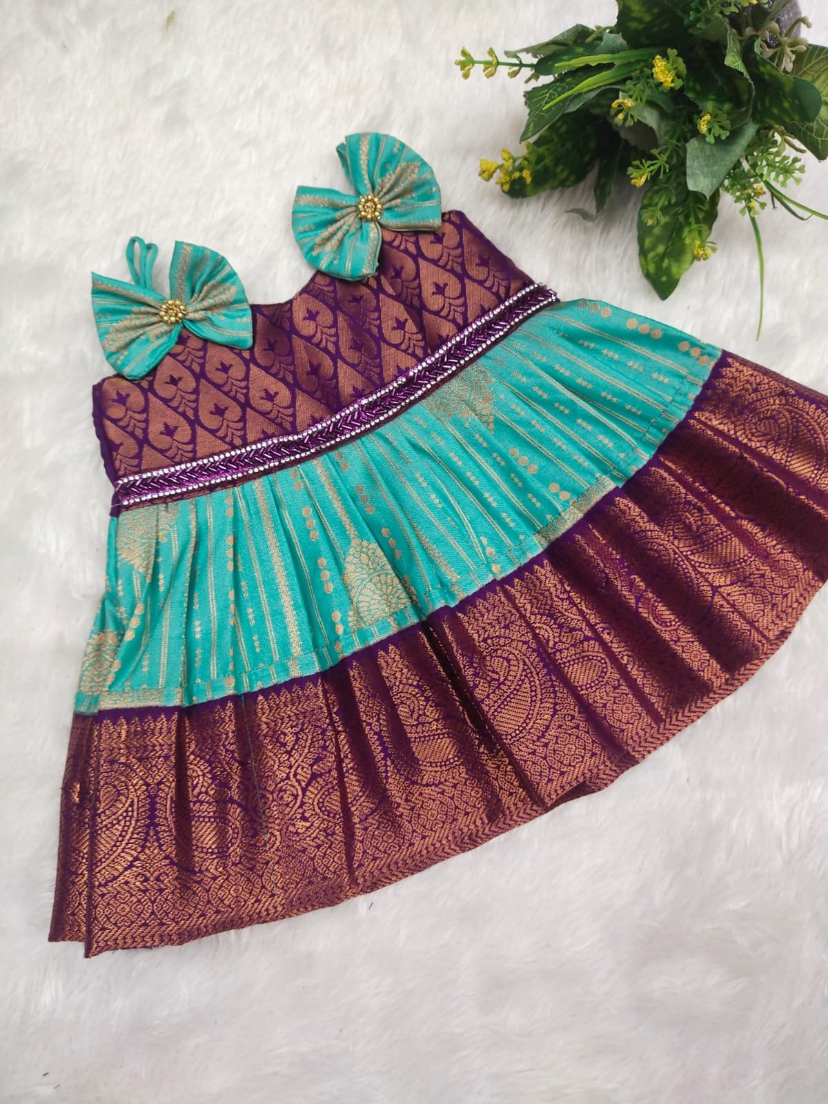 Elevate your little one’s wardrobe with Prettypattu's exquisite collection of Pattu Pavadai, Frocks, and Half Sarees – a perfect blend of tradition, comfort, and elegance. Designed to celebrate the rich cultural heritage of South India, these timeless pieces bring grace and charm to any occasion, whether it's a festival, family gathering, or a special event.