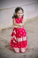 Tailored with a focus on comfort and movement, our garments are designed to ensure ease of wear for girls of all ages. Whether it’s a playful frock for a casual day, a Pattu Pavadai for festive occasions, or a Half Saree for a cultural event, our collection ensures that your little one looks graceful while feeling comfortable throughout the day.