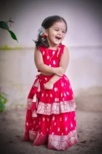 Crafted from luxurious pattu silk, our clothing offers the richness of traditional textiles with the comfort your little one deserves. The fabric is chosen for its soft feel, lustrous sheen, and long-lasting wear, making it perfect for both grand celebrations and casual gatherings.