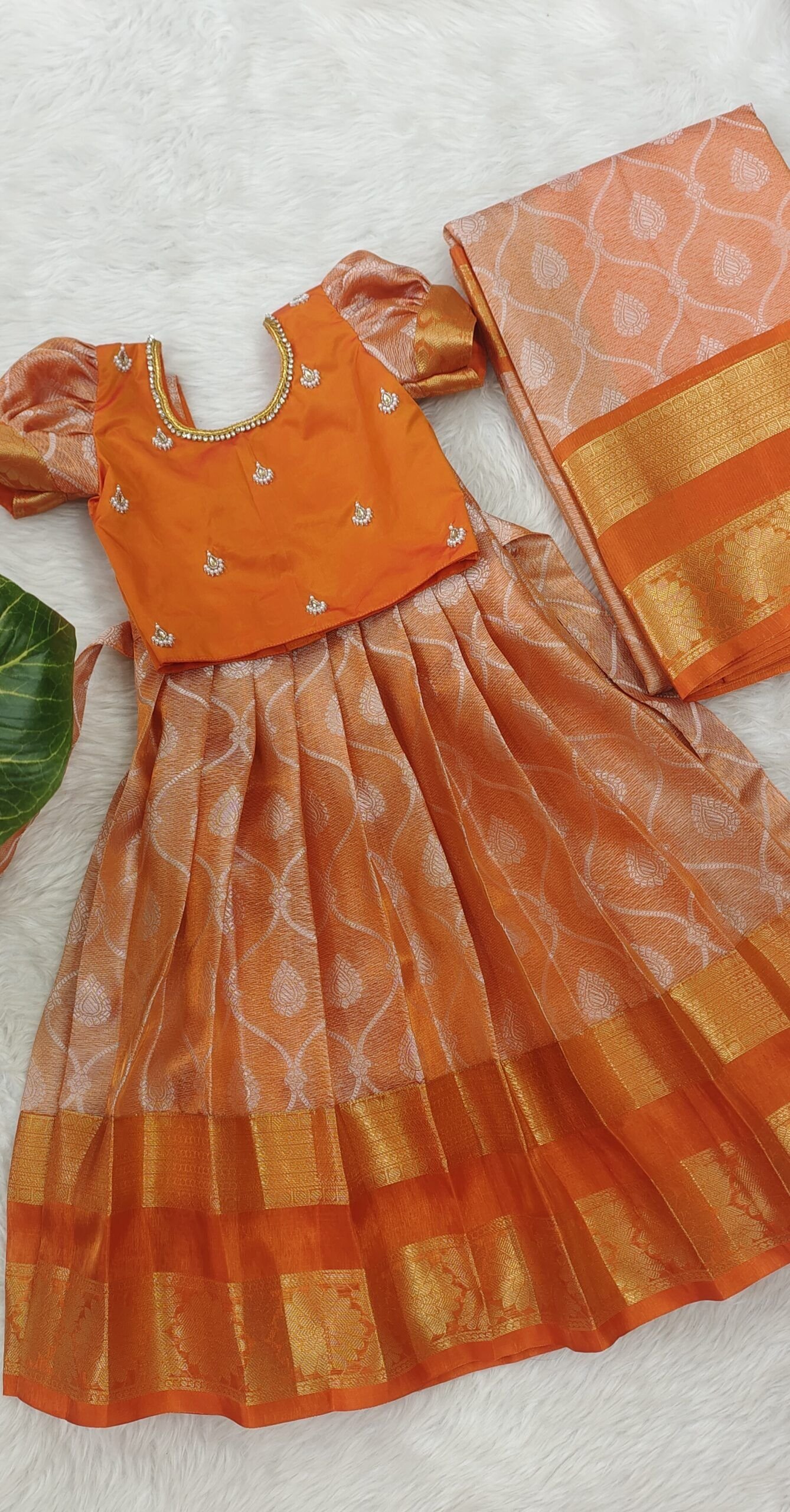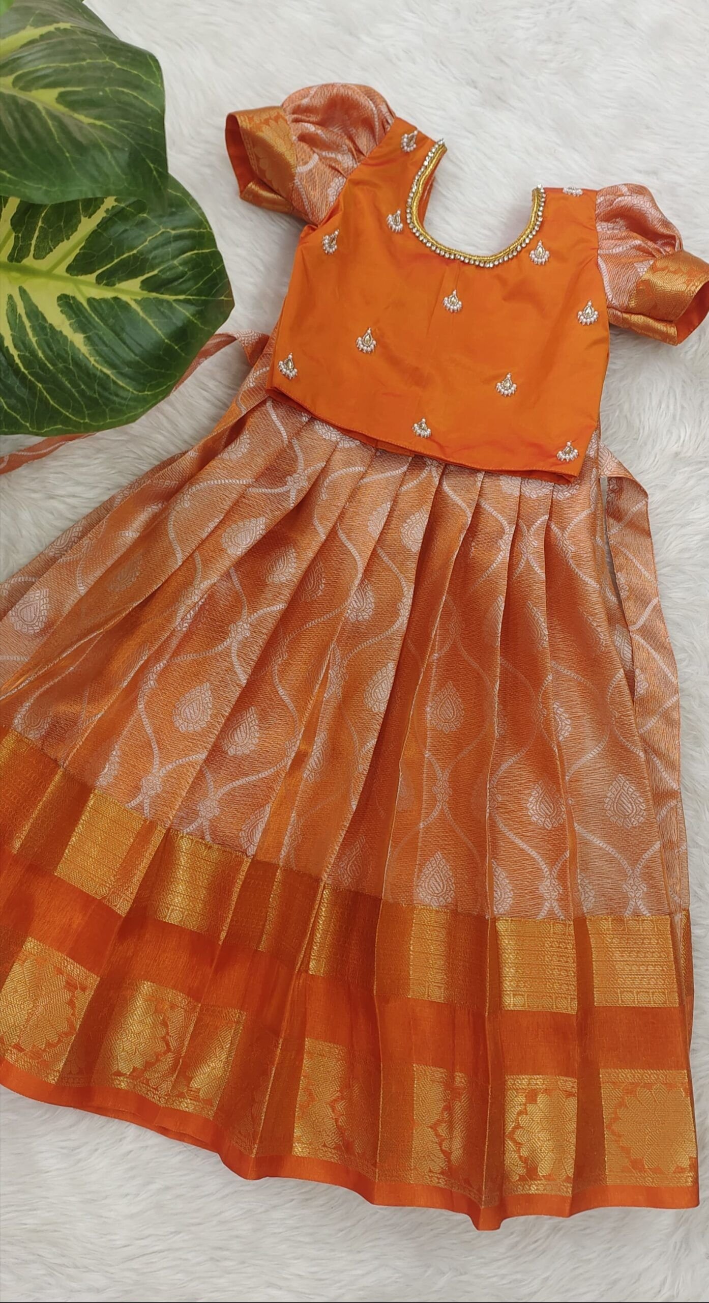 Crafted from luxurious pattu silk, our clothing offers the richness of traditional textiles with the comfort your little one deserves. The fabric is chosen for its soft feel, lustrous sheen, and long-lasting wear, making it perfect for both grand celebrations and casual gatherings.