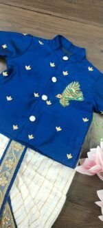 Crafted from luxurious pattu silk, our clothing offers the richness of traditional textiles with the comfort your little one deserves. The fabric is chosen for its soft feel, lustrous sheen, and long-lasting wear, making it perfect for both grand celebrations and casual gatherings.