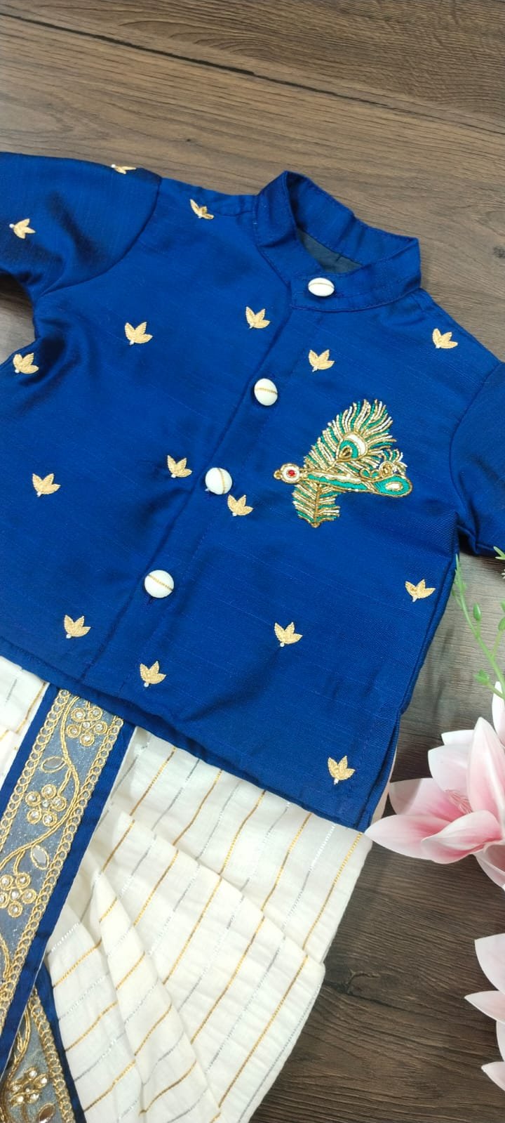 Premium Raw Silk Dhoti and Kurta with Aari Work