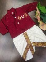 Crafted from luxurious pattu silk, our clothing offers the richness of traditional textiles with the comfort your little one deserves. The fabric is chosen for its soft feel, lustrous sheen, and long-lasting wear, making it perfect for both grand celebrations and casual gatherings.
