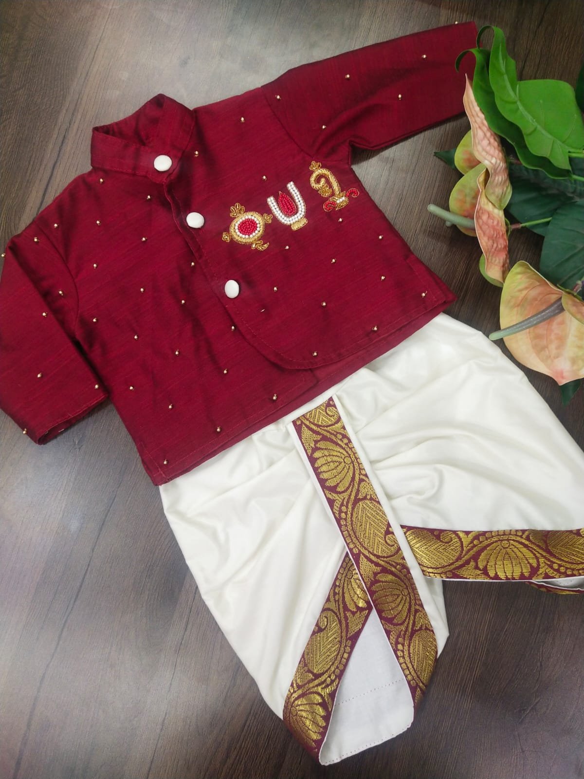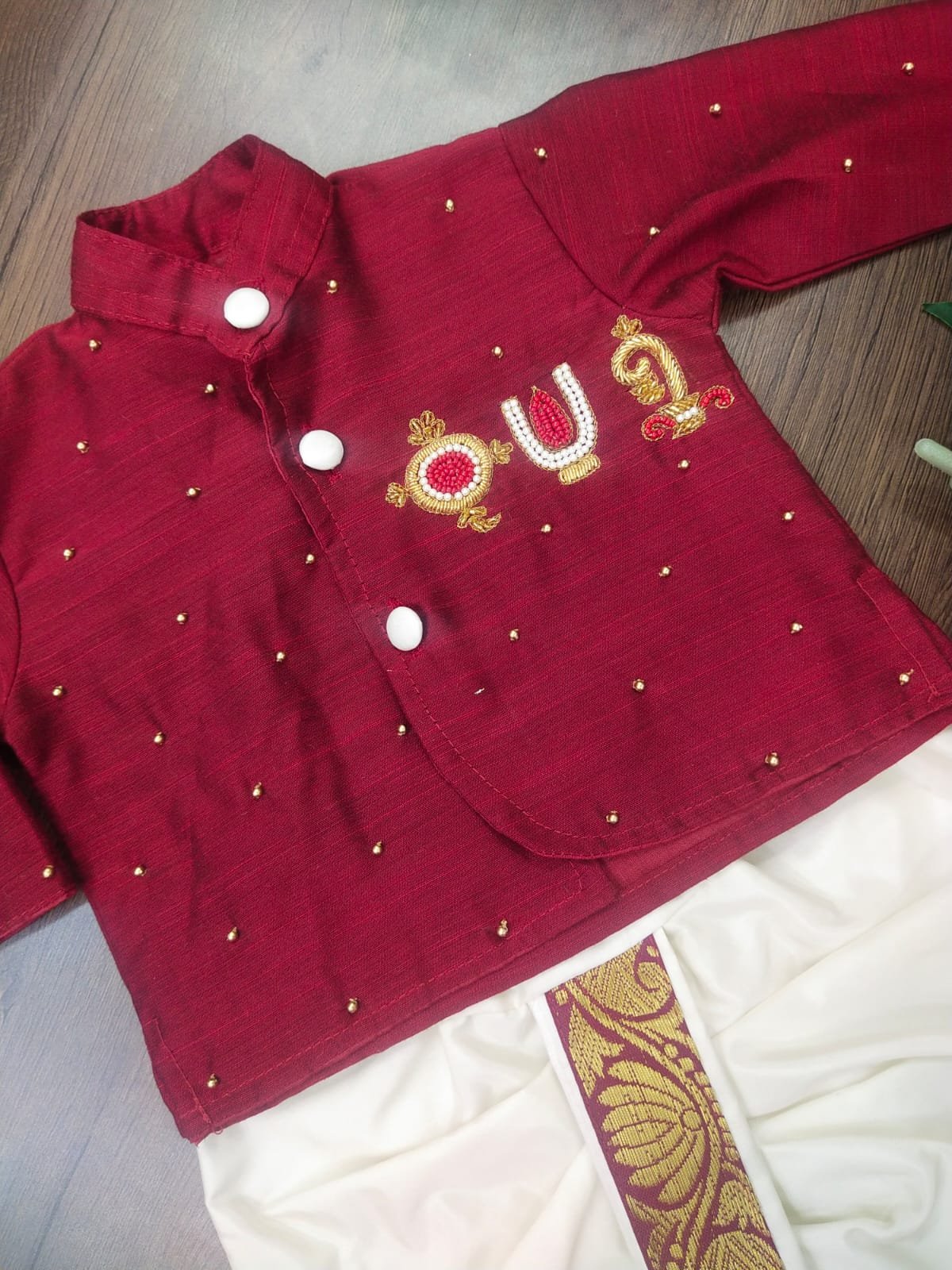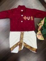 Premium Raw Silk Dhoti and Kurta with Aari Work