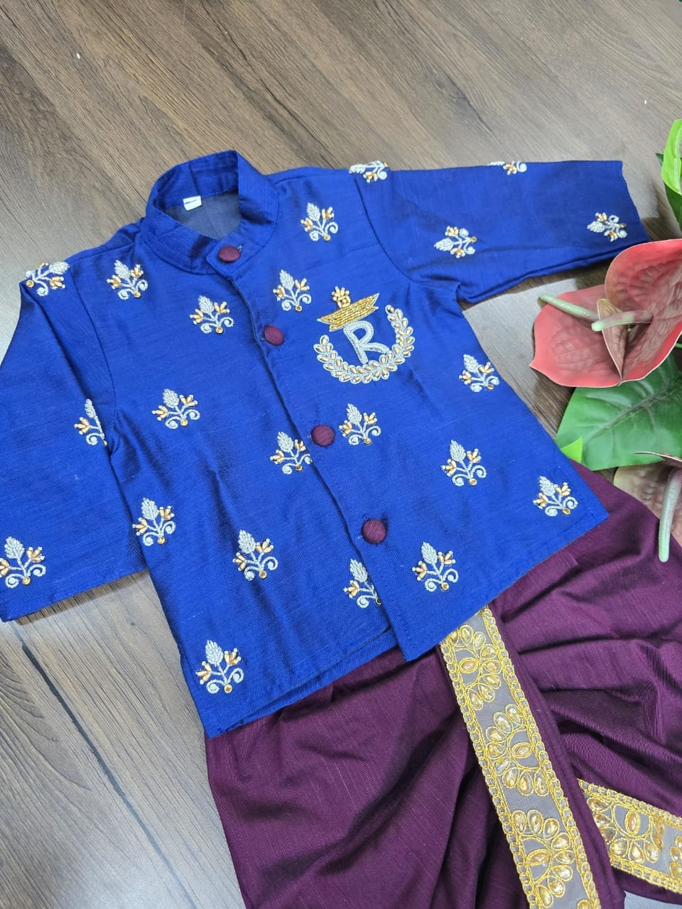 Premium Raw Silk Dhoti with Aari Work Kurta