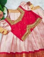 Crafted from luxurious pattu silk, our clothing offers the richness of traditional textiles with the comfort your little one deserves. The fabric is chosen for its soft feel, lustrous sheen, and long-lasting wear, making it perfect for both grand celebrations and casual gatherings.