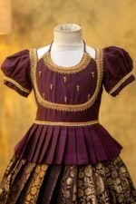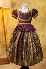 Crafted from luxurious pattu silk, our clothing offers the richness of traditional textiles with the comfort your little one deserves. The fabric is chosen for its soft feel, lustrous sheen, and long-lasting wear, making it perfect for both grand celebrations and casual gatherings.