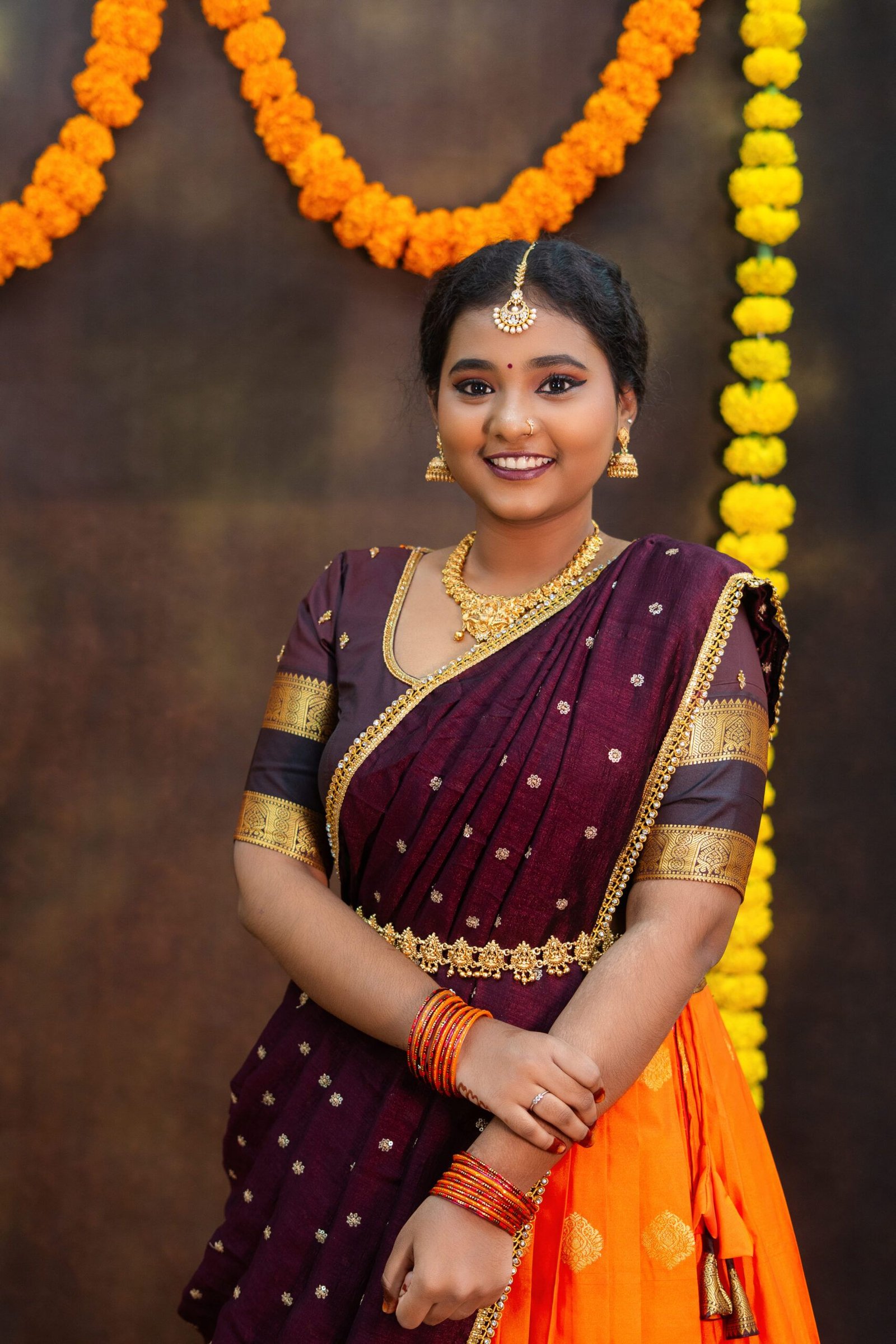 Royal Maroon Sunset Half Saree ✨ Exclusively at Pretty Pattu Boutique 💛