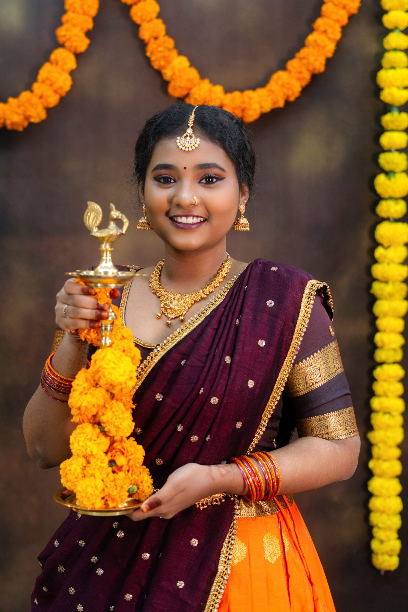Featuring intricate designs with traditional motifs, our Pattu Pavadai, Frocks, and Half Sarees showcase the beauty of South Indian craftsmanship. The vibrant colors, detailed embroidery, and elegant embellishments are thoughtfully incorporated to create pieces that reflect both heritage and contemporary style. These outfits are perfect for girls who want to look stylish while embracing tradition.