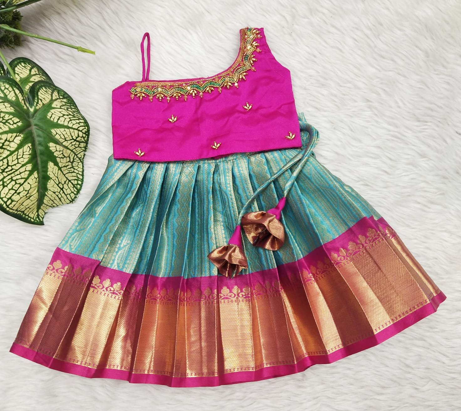 Elevate your little one’s wardrobe with Prettypattu's exquisite collection of Pattu Pavadai, Frocks, and Half Sarees – a perfect blend of tradition, comfort, and elegance. Designed to celebrate the rich cultural heritage of South India, these timeless pieces bring grace and charm to any occasion, whether it's a festival, family gathering, or a special event.