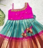 Crafted from luxurious pattu silk, our clothing offers the richness of traditional textiles with the comfort your little one deserves. The fabric is chosen for its soft feel, lustrous sheen, and long-lasting wear, making it perfect for both grand celebrations and casual gatherings.