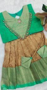 Crafted from luxurious pattu silk, our clothing offers the richness of traditional textiles with the comfort your little one deserves. The fabric is chosen for its soft feel, lustrous sheen, and long-lasting wear, making it perfect for both grand celebrations and casual gatherings.