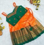 Crafted from luxurious pattu silk, our clothing offers the richness of traditional textiles with the comfort your little one deserves. The fabric is chosen for its soft feel, lustrous sheen, and long-lasting wear, making it perfect for both grand celebrations and casual gatherings.