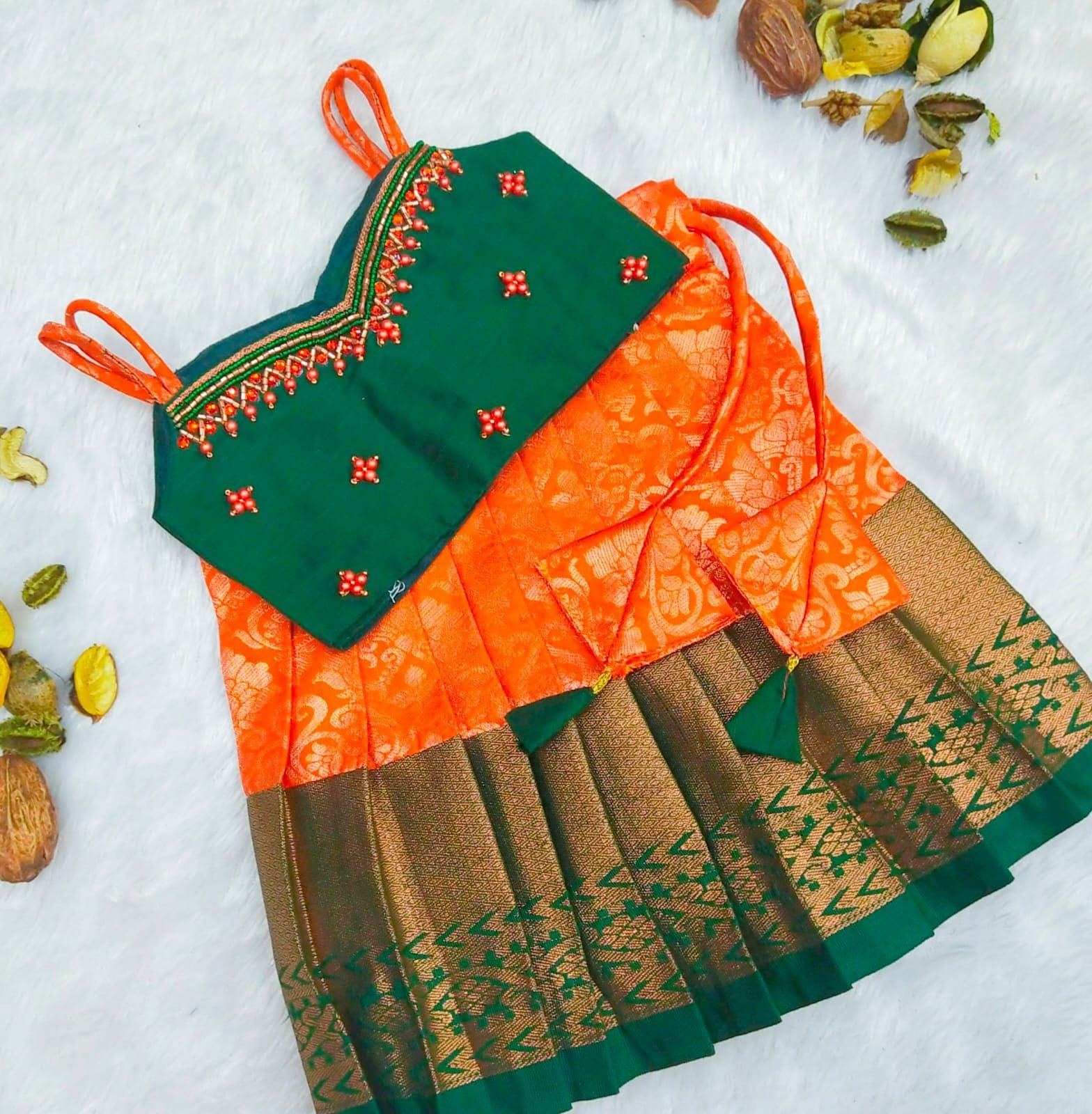 Elevate your little one’s wardrobe with Prettypattu's exquisite collection of Pattu Pavadai, Frocks, and Half Sarees – a perfect blend of tradition, comfort, and elegance. Designed to celebrate the rich cultural heritage of South India, these timeless pieces bring grace and charm to any occasion, whether it's a festival, family gathering, or a special event.