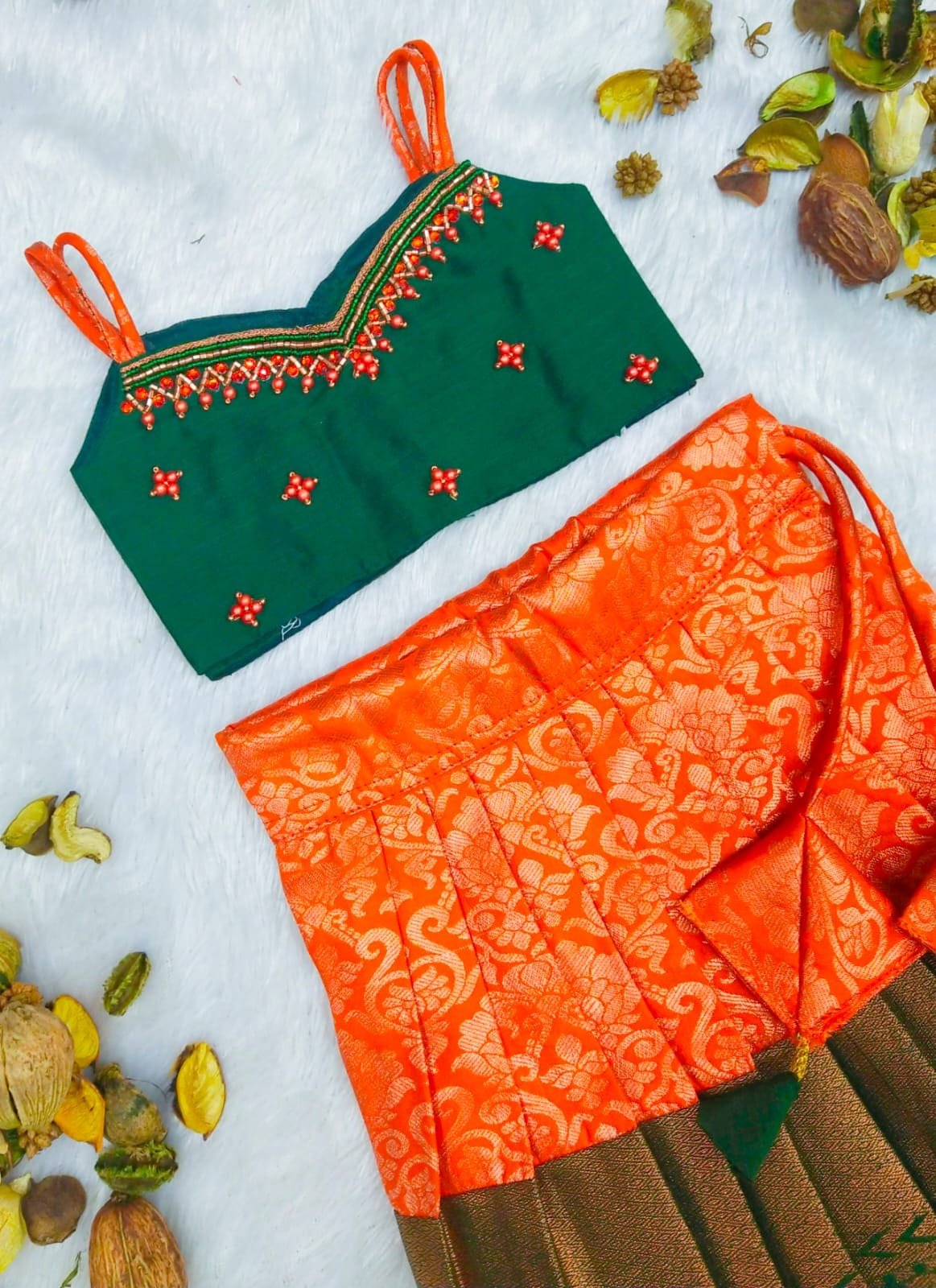 Featuring intricate designs with traditional motifs, our Pattu Pavadai, Frocks, and Half Sarees showcase the beauty of South Indian craftsmanship. The vibrant colors, detailed embroidery, and elegant embellishments are thoughtfully incorporated to create pieces that reflect both heritage and contemporary style. These outfits are perfect for girls who want to look stylish while embracing tradition.