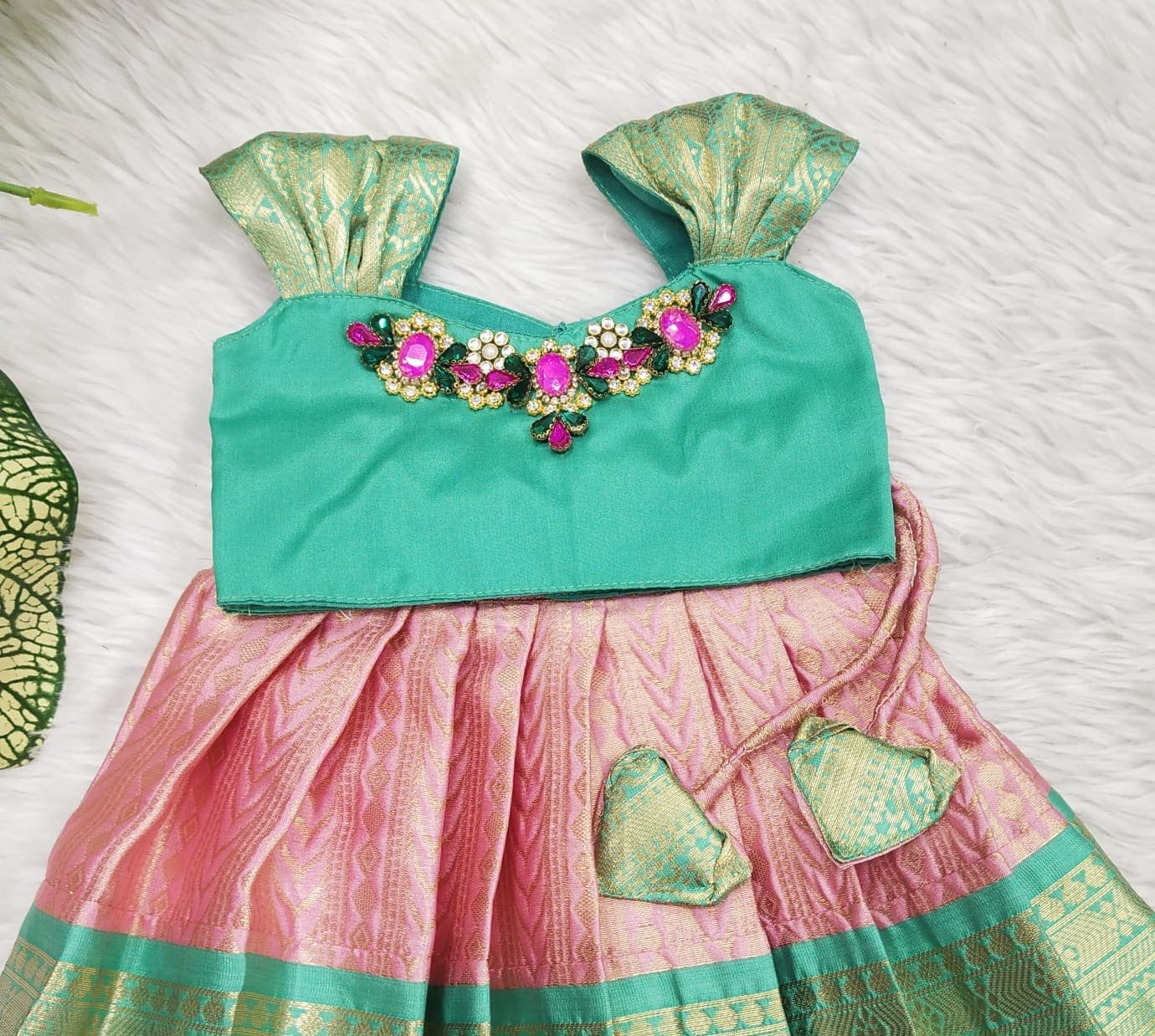 Featuring intricate designs with traditional motifs, our Pattu Pavadai, Frocks, and Half Sarees showcase the beauty of South Indian craftsmanship. The vibrant colors, detailed embroidery, and elegant embellishments are thoughtfully incorporated to create pieces that reflect both heritage and contemporary style. These outfits are perfect for girls who want to look stylish while embracing tradition.