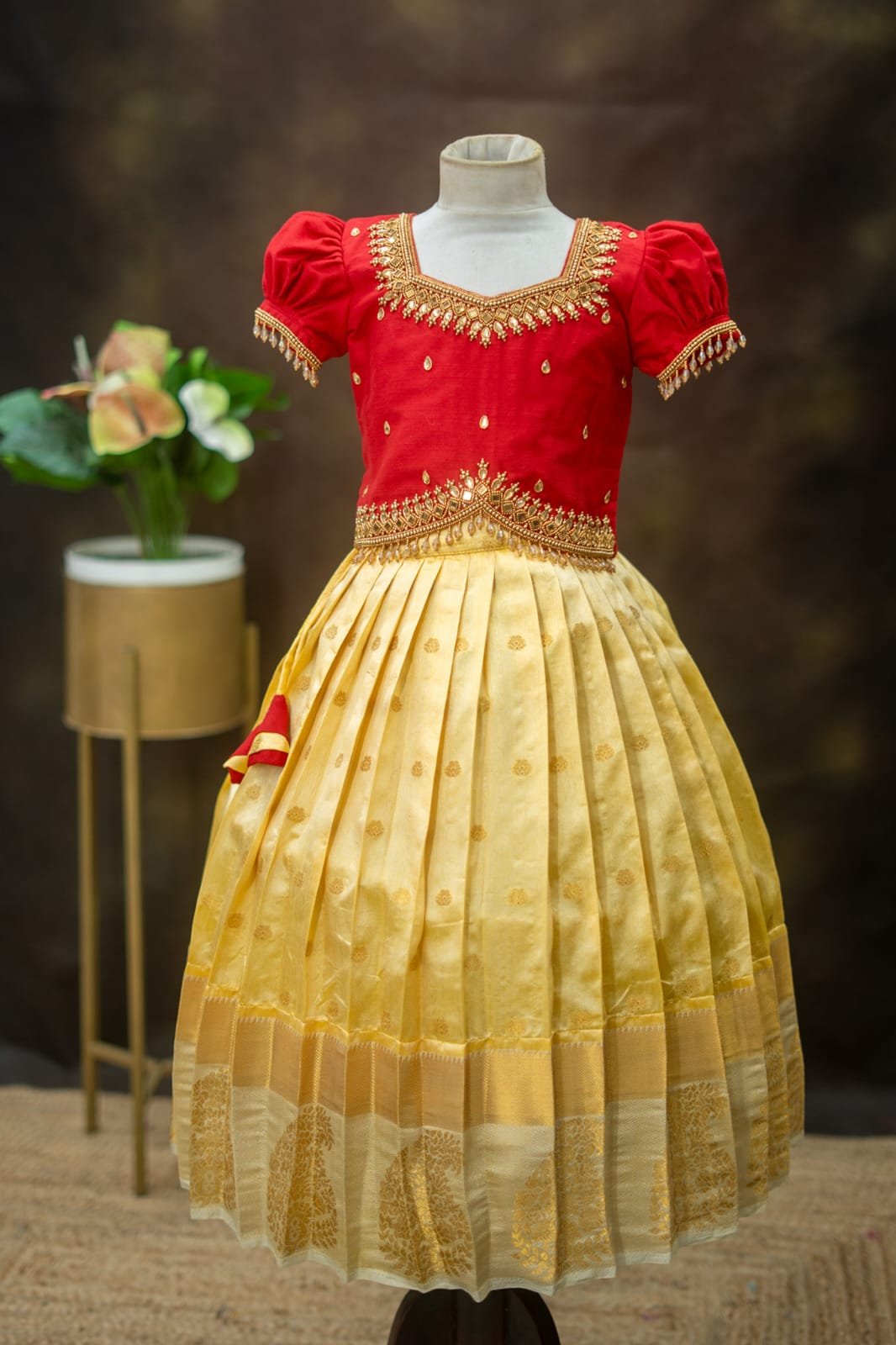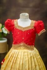 Crafted from luxurious pattu silk, our clothing offers the richness of traditional textiles with the comfort your little one deserves. The fabric is chosen for its soft feel, lustrous sheen, and long-lasting wear, making it perfect for both grand celebrations and casual gatherings.