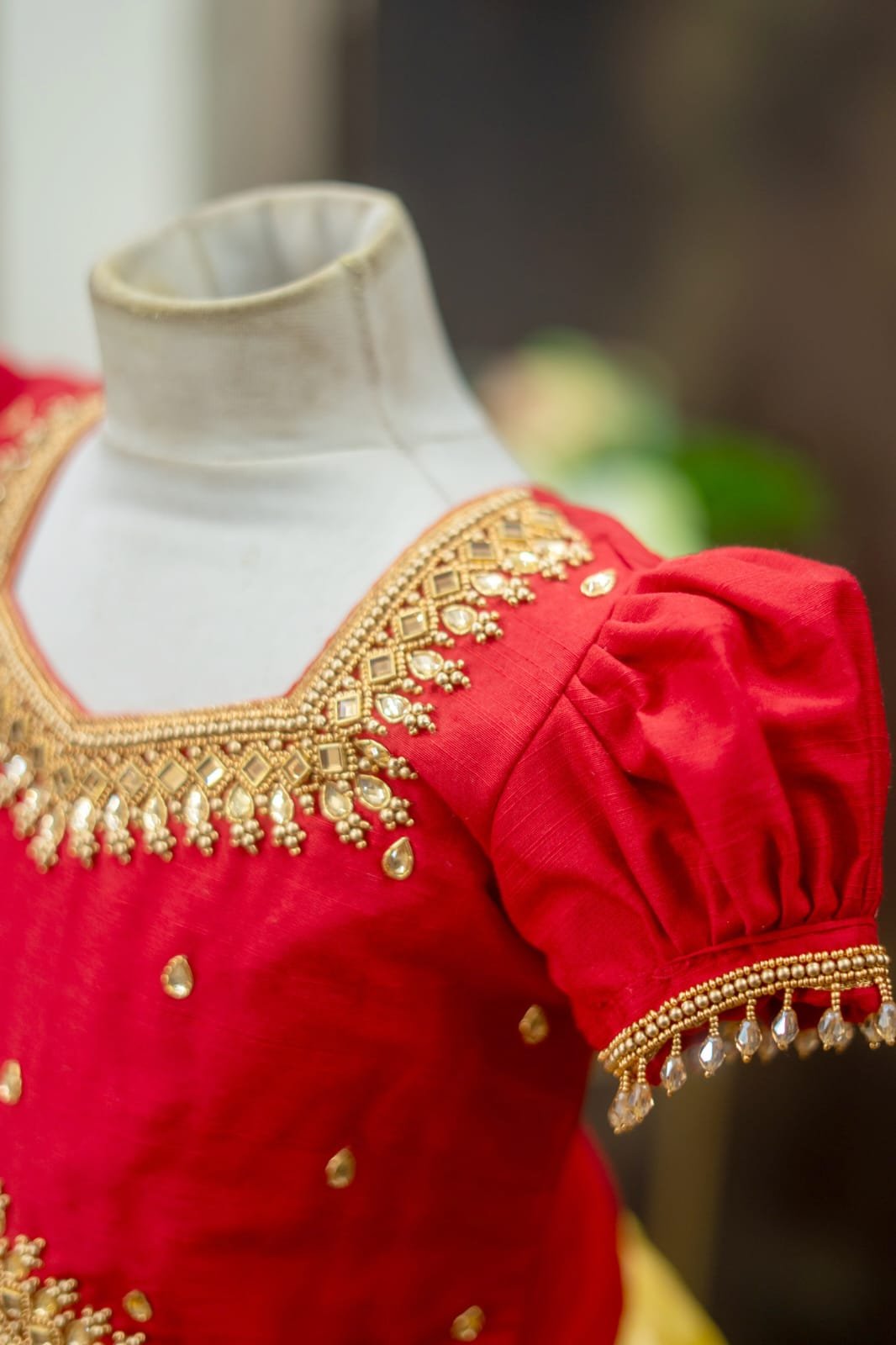 Puff sleeves with bead hanging work