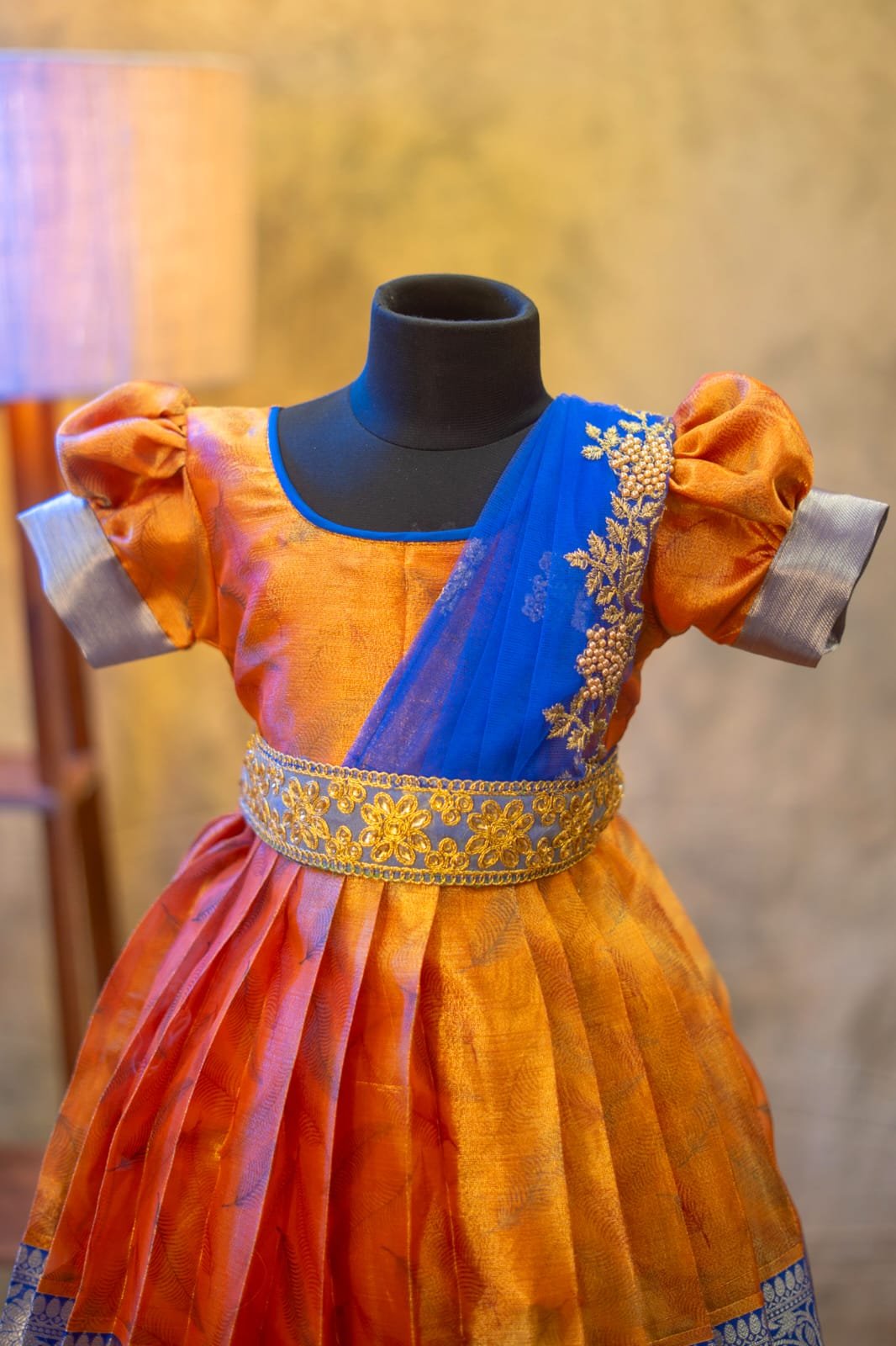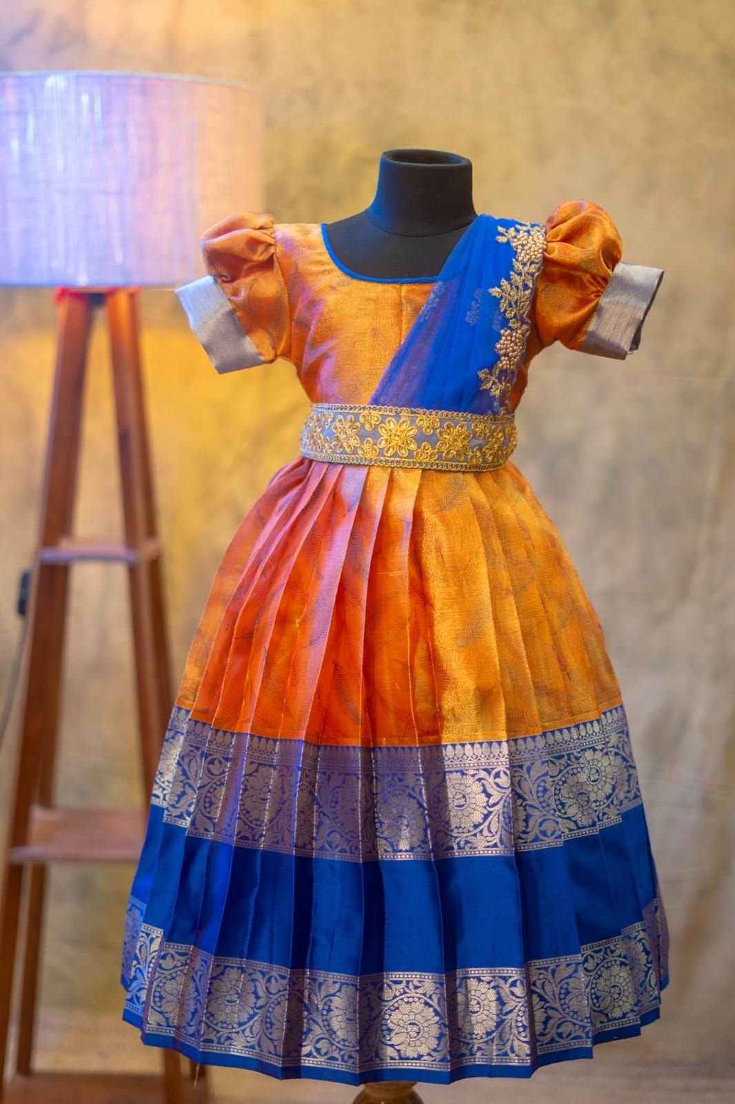 Crafted from luxurious pattu silk, our clothing offers the richness of traditional textiles with the comfort your little one deserves. The fabric is chosen for its soft feel, lustrous sheen, and long-lasting wear, making it perfect for both grand celebrations and casual gatherings.