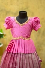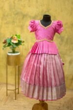 Crafted from luxurious pattu silk, our clothing offers the richness of traditional textiles with the comfort your little one deserves. The fabric is chosen for its soft feel, lustrous sheen, and long-lasting wear, making it perfect for both grand celebrations and casual gatherings.