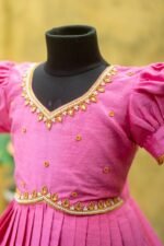 Tailored with a focus on comfort and movement, our garments are designed to ensure ease of wear for girls of all ages. Whether it’s a playful frock for a casual day, a Pattu Pavadai for festive occasions, or a Half Saree for a cultural event, our collection ensures that your little one looks graceful while feeling comfortable throughout the day.