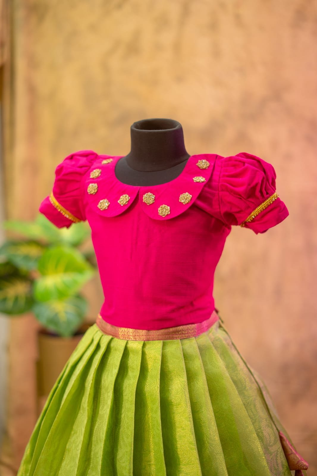 Elevate your little one’s wardrobe with Prettypattu's exquisite collection of Pattu Pavadai, Frocks, and Half Sarees – a perfect blend of tradition, comfort, and elegance. Designed to celebrate the rich cultural heritage of South India, these timeless pieces bring grace and charm to any occasion, whether it's a festival, family gathering, or a special event.
