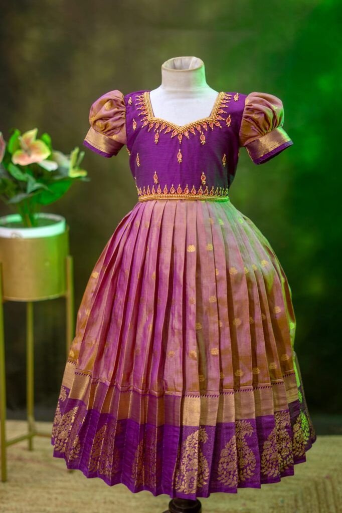 - Fabric: Beautiful Banarasi Kanchi pattu frock, combining the richness of Banarasi with the traditional elegance of Kanchi pattu.